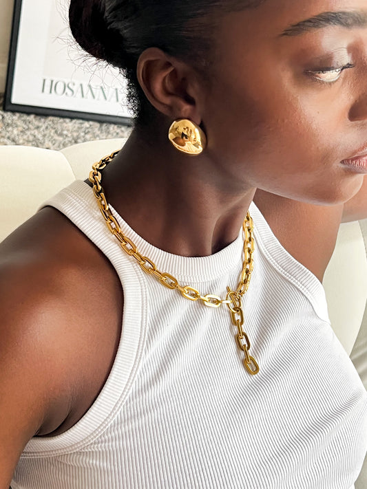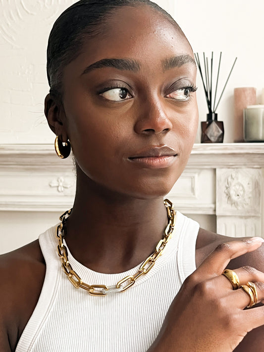 Mix and Match and Stack earrings, rings and chains. Shop our statement gold plated pieces, for an elevated look.